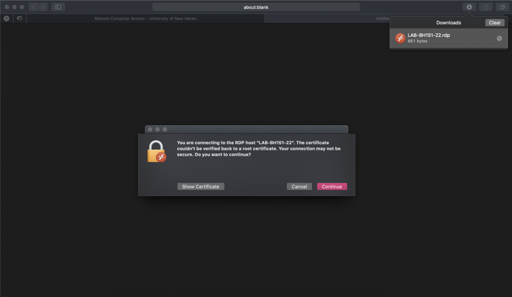 After you click “Connect”, you will be prompted to download and open the connection file. Click “Download” to start the process.