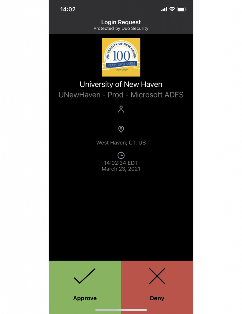 Verify your account with the DUO mobile application.